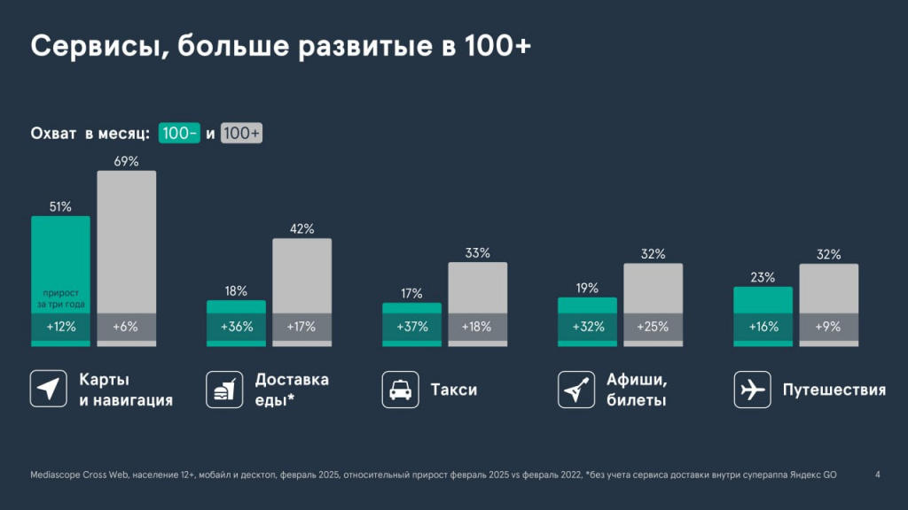 Почти половина жителей малых городов ежедневно пользуется онлайн-магазинами, а месячный охват eСommerce-ресурсов достигает 77%. Время, которое они тратят на онлайн-покупки, составляет в среднем 24 минуты в день — всего на 3 минуты меньше, чем у жителей мегаполисов.