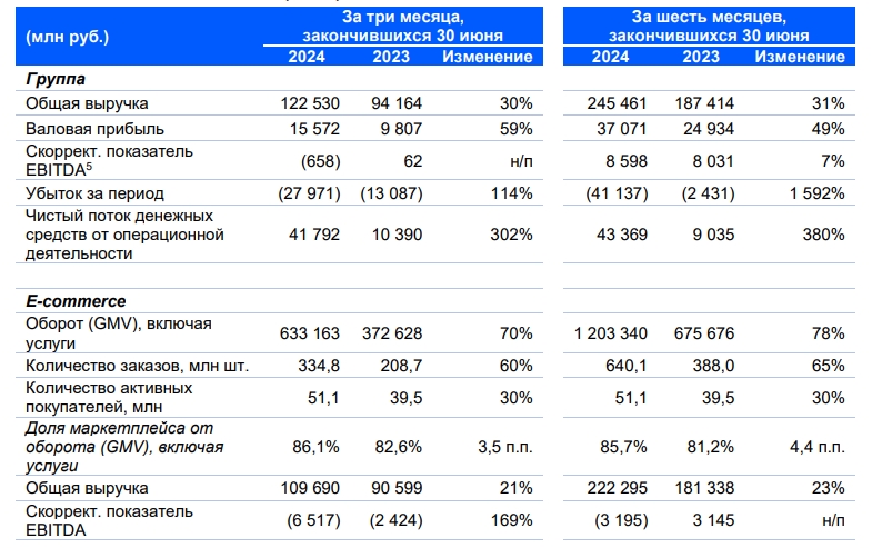Общая выручка компании увеличилась на 30% год к году и составила 122,5 млрд рублей. При этом убыток маркетплейса во втором квартале 2024 года составил 28 млрд рублей, что обусловлено значительным ростом финансовых расходов и расходов на амортизацию.