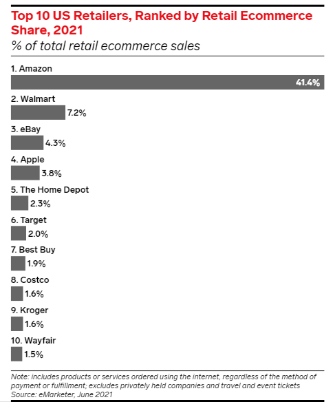 Свежая аналитика по всем крупнейшим американским ритейлерам от eMarketer: