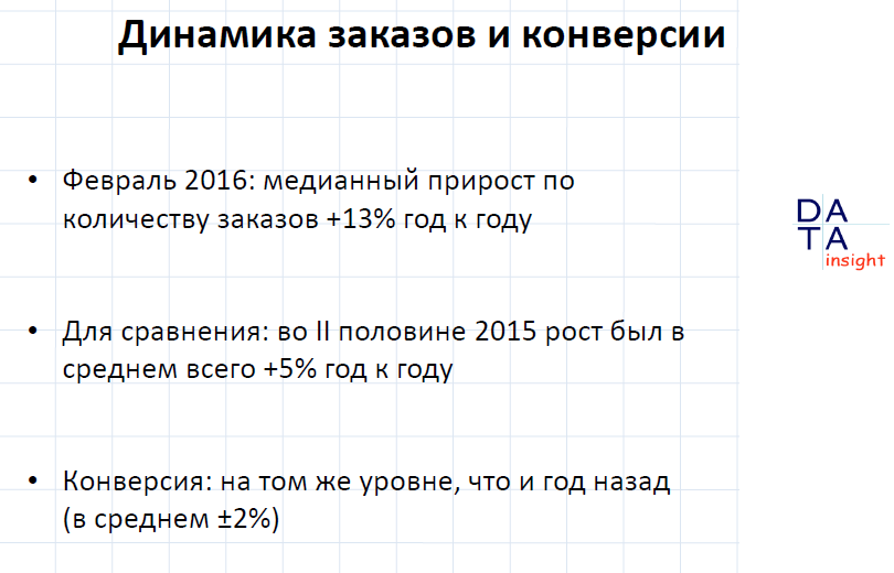 "2016 год для всех товарных категорий оказался сильно лучше, чем планировали. eCommerce сильно начал расти в феврале-марте 2016 года. Январь тоже был удачен, но не так сильно, и сравнивать его с январем прошлого года не стоит, так как в прошлом году был очень плохой январь после декабрьских распродаж", - заключает Вирин.