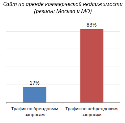 Рис.3. Доля брендового и небрендового трафика с органической выдачи поисковых систем для малоизвестного бренда. |