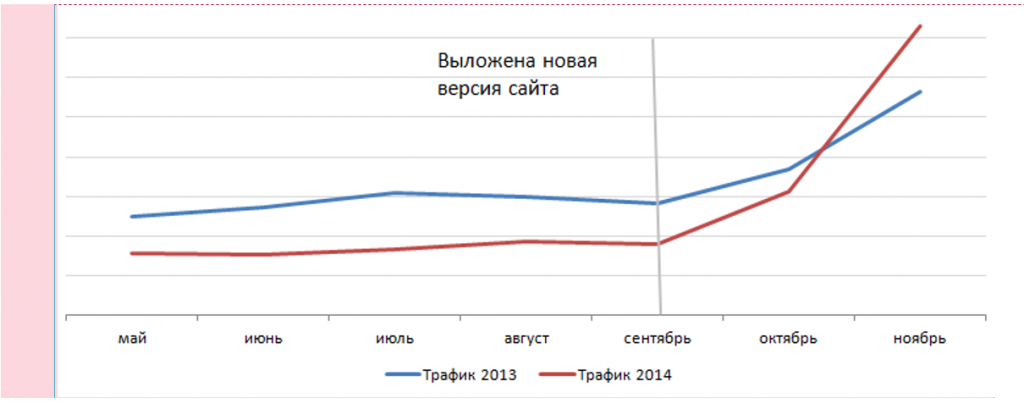 Рис.6. Сравнение трафика с SEO за 2013 и 2014 гг.