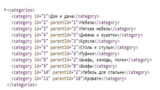Рис. 2 В фиде клиента категория одна – «Диваны».