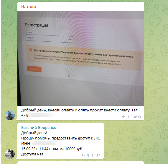 "Это плата за регистрацию, возврату не подлежит. На текущий момент нет информации о других способах регистрации", - пишут представители компании.