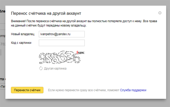 Но в некоторых случаях пользователю требуется передать весь счётчик со всеми данными другому логину в полное владение. И если раньше такая передача была возможна только через службу поддержки, то теперь всё можно сделать самостоятельно и моментально.
