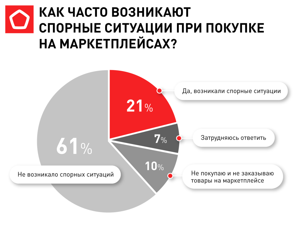 Анализ опыта пользователей показал, что на российском рынке до сих пор сохраняется высокий уровень фальсификации и сложностей взаимодействия с продавцами: у каждого пятого россиянина возникли спорные ситуации или проблемы с продавцами при покупке товаров на маркетплейсах.