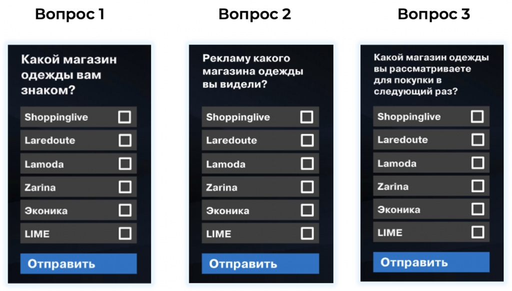 Вопрос “Какой магазины одежды вы рассматриваете в следующий раз?”