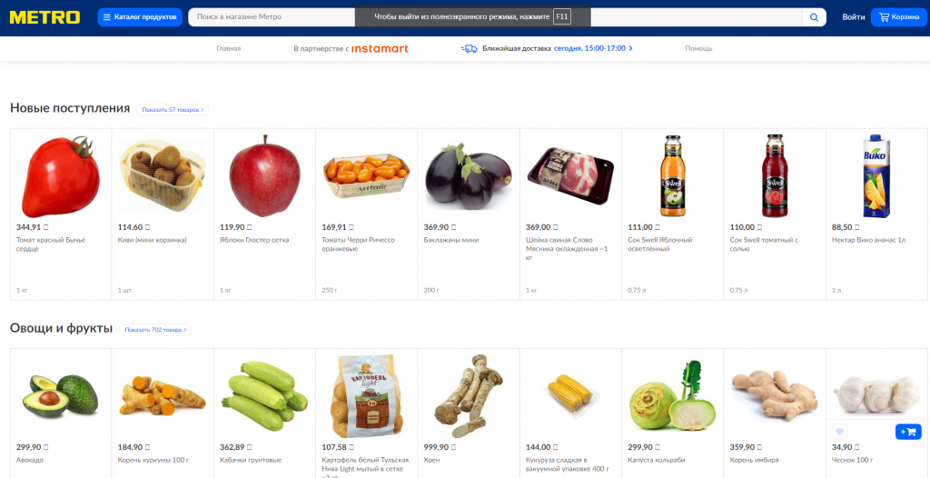"Совместный интернет-магазин с Instamart позволяет сделать доставку до дома для физических лиц без карты или для небольших предприятий с минимальным заказом и в кратчайшие сроки. Мы ждем, что это решение будет пользоваться большим спросом, поскольку формат торговых центров Metro ориентирован на опт, а ассортимент привлекателен и для регулярных закупок", - сообщили в пресс-службе.