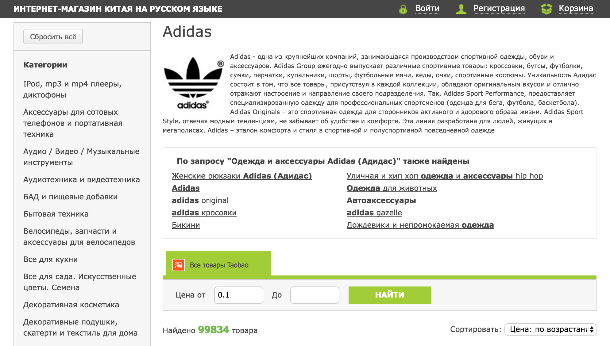 Выдача товаров Аdidas была удалена с сайта, при этом страница бренда до сих пор функционирует: