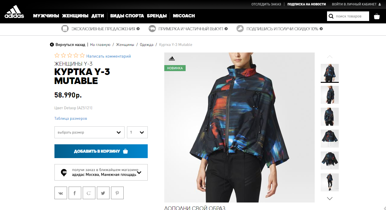 Если изучить сайты магазинов, то становится понятно, что единой нормы до сих пор не выработано даже в одном узком сегменте. Например, онлайн-магазин спортивной одежды Reebok использует снимки всего с 2 ракурсов на одну карточку товара, их конкуренты из «Боско» и Nike задействует 6 снимков, а на площадке Adidas показывают до 9 фотографий.