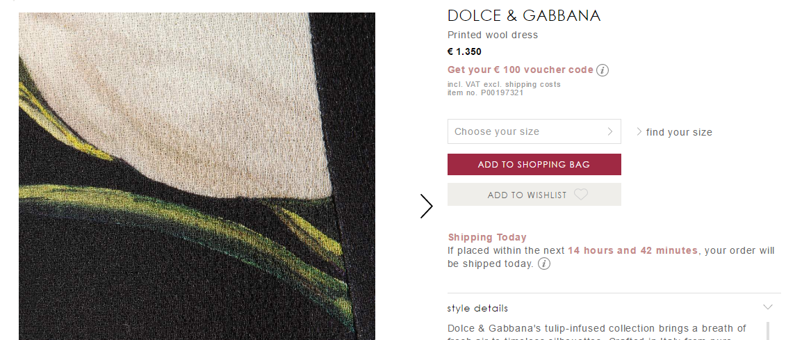 Вот как фотографии текстуры и окраски ткани используются для демонстрации платьев коллекции от Dolce & Gabbana на сайте бутика mytheresa.com.