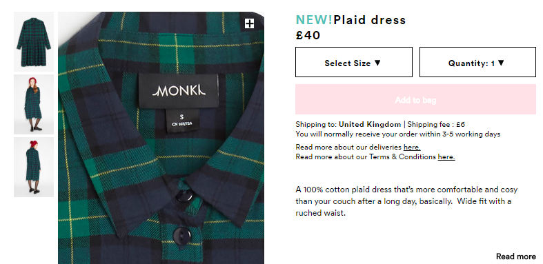 Типичным примером является сайт Monki.com, снимки одежды на котором можно приблизить настолько сильно, что четко различимы все швы, структура ткани, а также бирки на платьях.