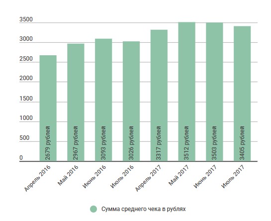 Обратите внимание на следующий график: в последнее время стабильно растут не только объемы заказов, пересылаемых наложенным платежом, но и их стоимость - “средний чек”.